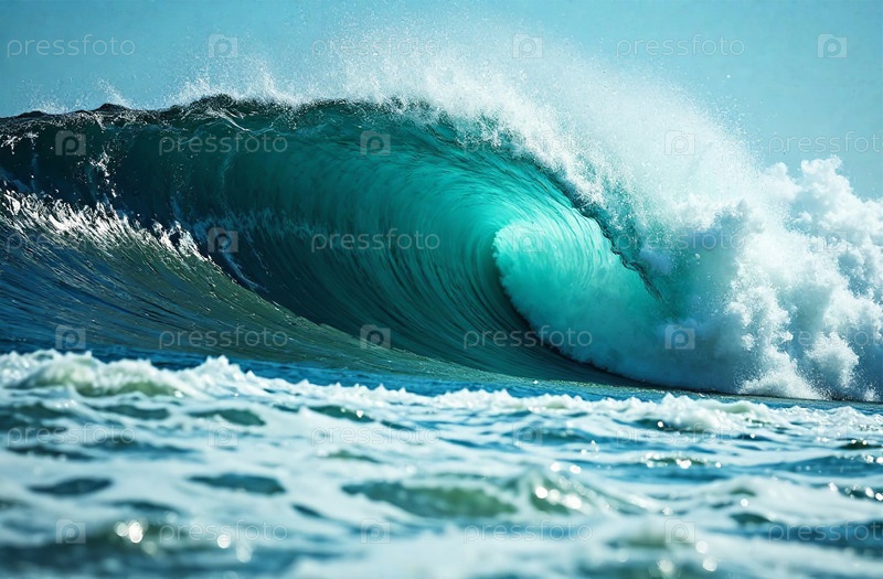 Синяя океанская волна, белая морская пена, шторм, морской пейзаж, синяя глубина. Генеративный ИИ