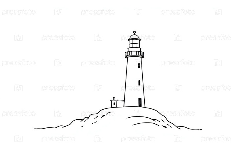Иллюстрация Маяк в океане, морской пейзаж, каменный мыс, вода. Генеративный ИИ