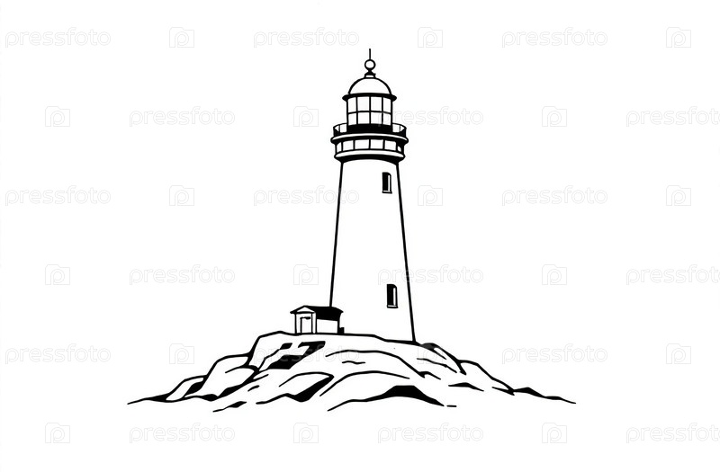 Иллюстрация Маяк в океане, морской пейзаж, каменный мыс, вода. Генеративный ИИ