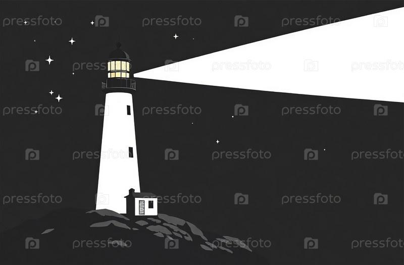 Иллюстрация Маяк в океане, морской пейзаж, каменный мыс, вода. Генеративный ИИ