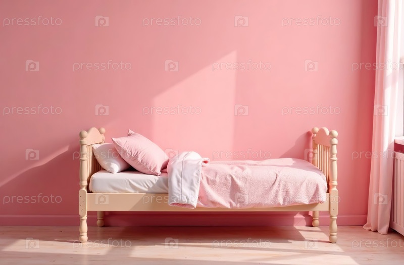 Современный интерьер детской комнаты розового цвета, игровая комната в доме. Генеративный искусственный интеллект