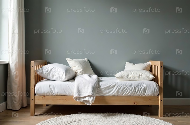 Современный интерьер детской комнаты серого цвета, игровая комната в доме. Генеративный искусственный интеллект
