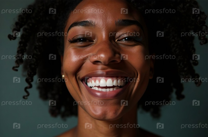 Большой портрет молодой улыбающейся красивой женщины, женский образ. Генеративный искусственный интеллект