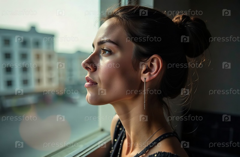 Большой портрет молодой улыбающейся красивой женщины, женский образ. Генеративный искусственный интеллект
