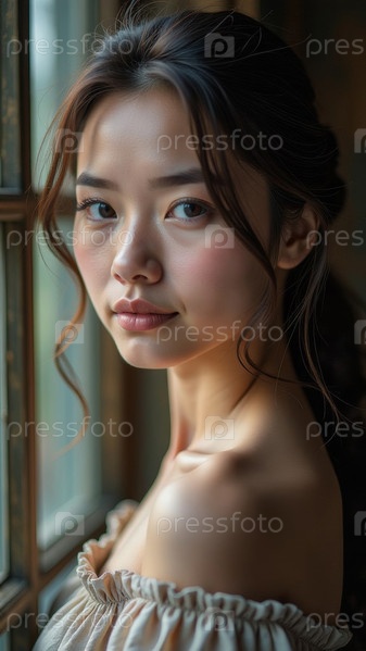 Большой портрет молодой улыбающейся красивой женщины, женский образ. Генеративный искусственный интеллект