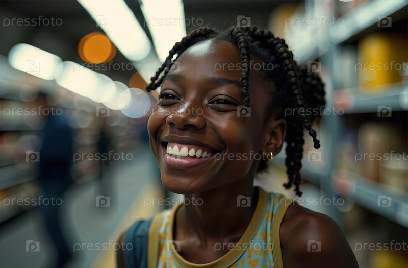 Большой портрет молодой улыбающейся красивой женщины, женский образ. Генеративный искусственный интеллект