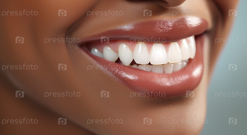 Улыбающаяся молодая красивая девушка с чистой идеальной кожей крупным планом. Красота, уход и стоматология концепция