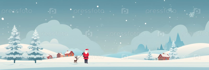 Санта-Клаус идет по заснеженному ландшафту, распространяя праздничное настроение снежинками и праздничными пожеланиями веселого Рождества