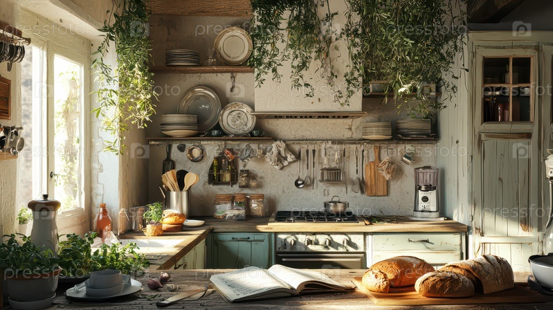 Уютная деревенская кухня со свежеиспеченным хлебом