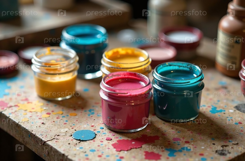 Гуашь на рабочем столе художника, художественный инструмент для хобби рисования. Генеративный искусственный интеллект