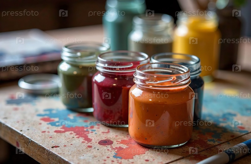 Гуашь на рабочем столе художника, художественный инструмент для хобби рисования. Генеративный искусственный интеллект