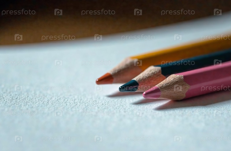 Карандаши лежат на белой бумаге, художественный инструмент для хобби рисования. Генеративный искусственный интеллект