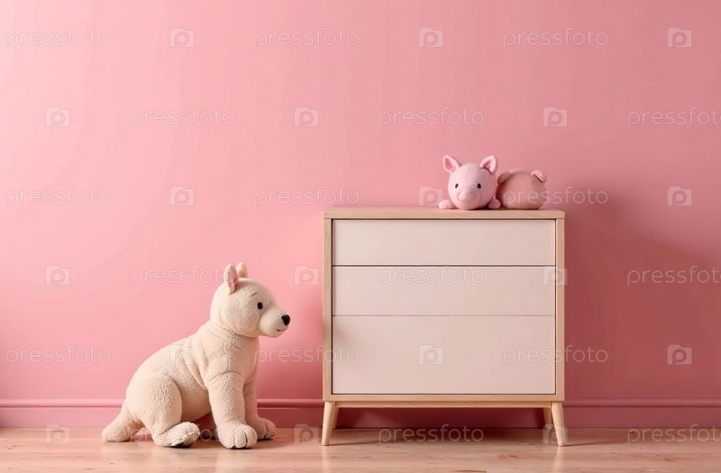 Современный интерьер детской комнаты розового цвета, игровая комната в доме. Генеративный искусственный интеллект