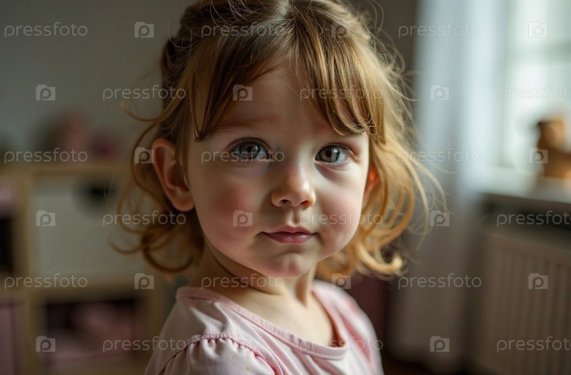 Портрет маленькой девочки в детской комнате, счастливое детство. Генеративный искусственный интеллект