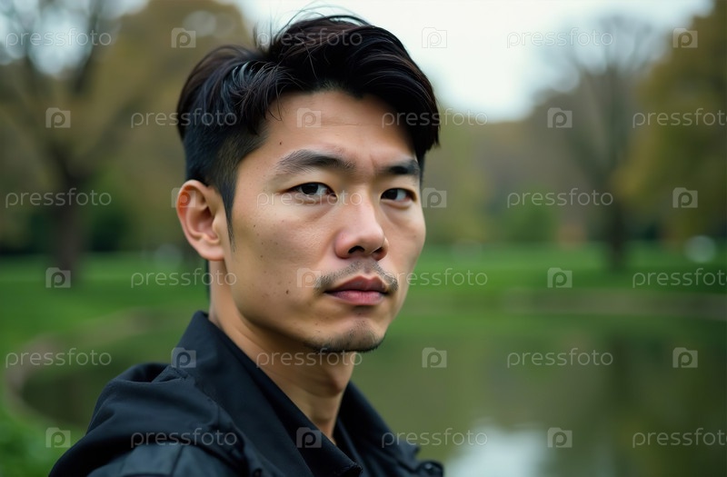 Привлекательный молодой человек стоит в летнем парке, портрет крупным планом. Генеративный искусственный интеллект