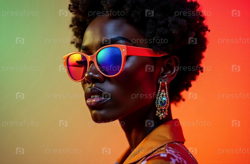 Большой ретро неоновый портрет 80-х годов красивой женщины, женский образ. Генеративный искусственный интеллект