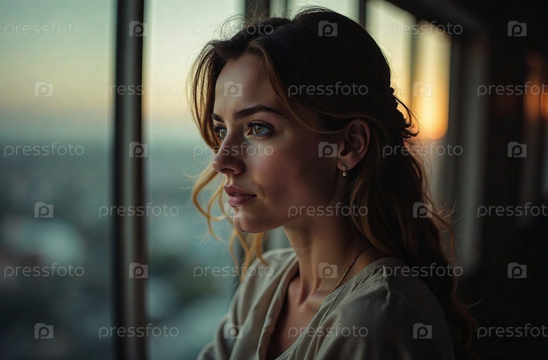 Большой портрет молодой улыбающейся красивой женщины, женский образ. Генеративный искусственный интеллект