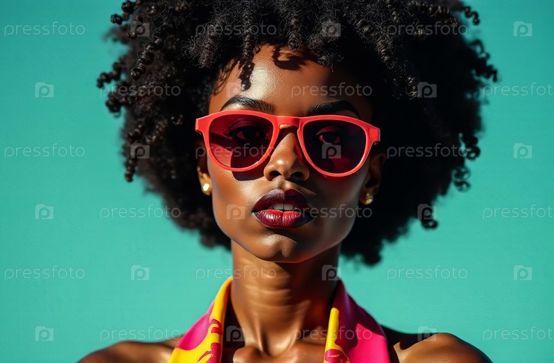 Большой ретро неоновый портрет 80-х годов красивой женщины, женский образ. Генеративный искусственный интеллект