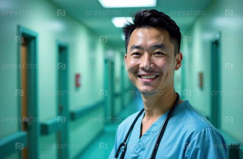 Портрет мужчины-врача Фон коридора в больнице. Сгенерировано искусственным интеллектом