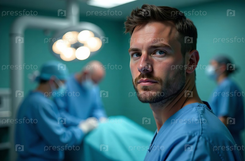 Портрет мужчины-врача на фоне операционной в больнице. Создано искусственным интеллектом