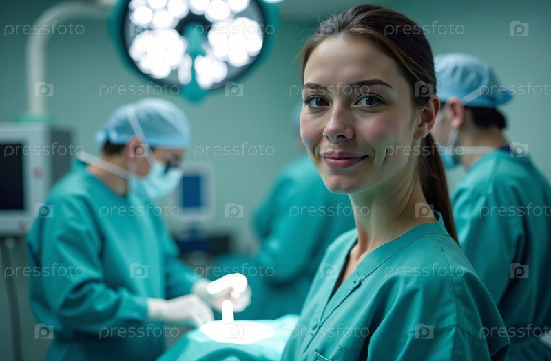 Портрет женщины-врача на фоне операционной в больнице. Создано искусственным интеллектом