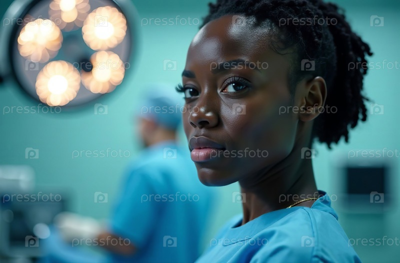 Портрет женщины-врача на фоне операционной в больнице. Создано искусственным интеллектом