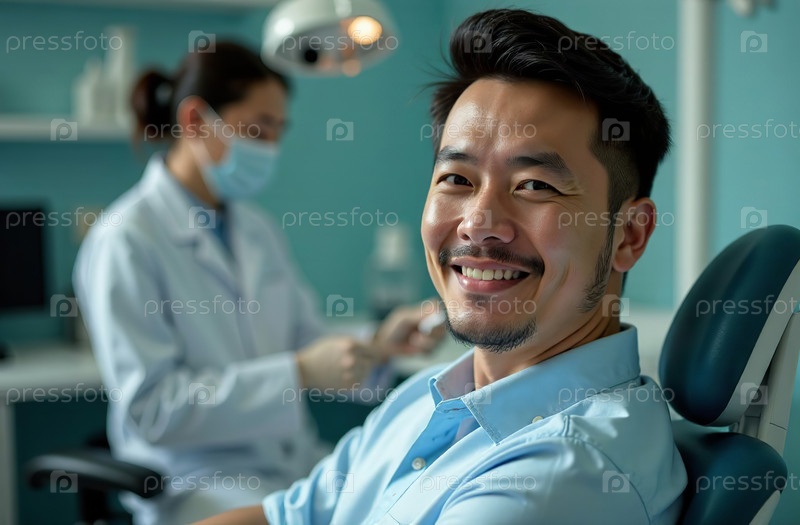 Портрет мужчины пациента Фон стоматологического кабинета в больнице. Сгенерировано ИИ