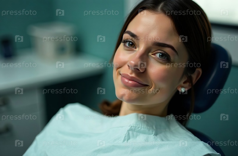 Портрет женщины-пациента Фон стоматологического кабинета в больнице. Сгенерировано ИИ