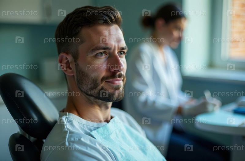 Портрет мужчины пациента Фон стоматологического кабинета в больнице. Сгенерировано ИИ