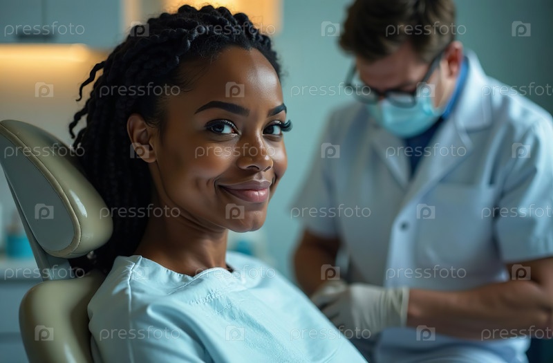 Портрет женщины-пациента Фон стоматологического кабинета в больнице. Сгенерировано ИИ