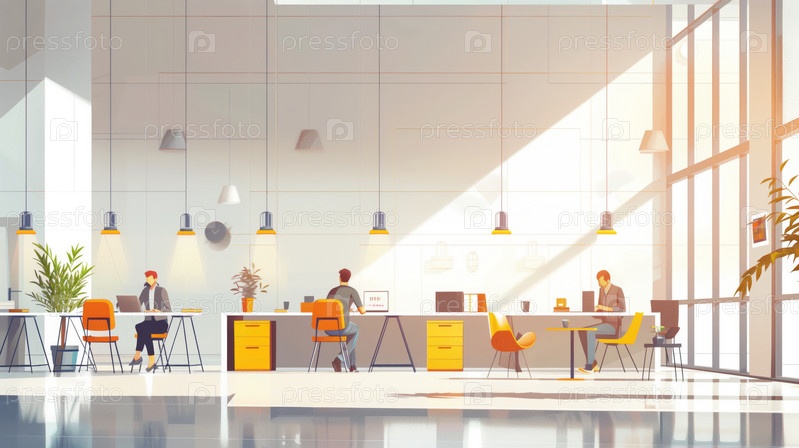 Современное офисное рабочее пространство с работающими людьми