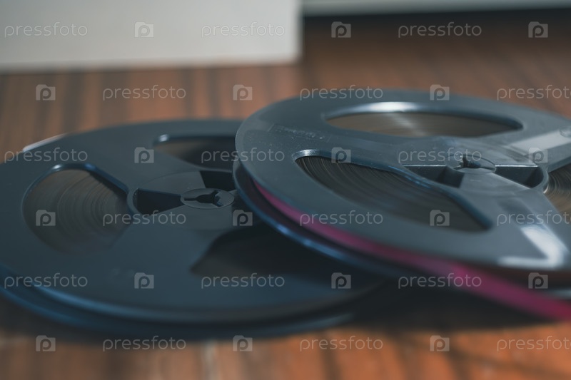Винтажный катушечный магнитофон на деревянном столе