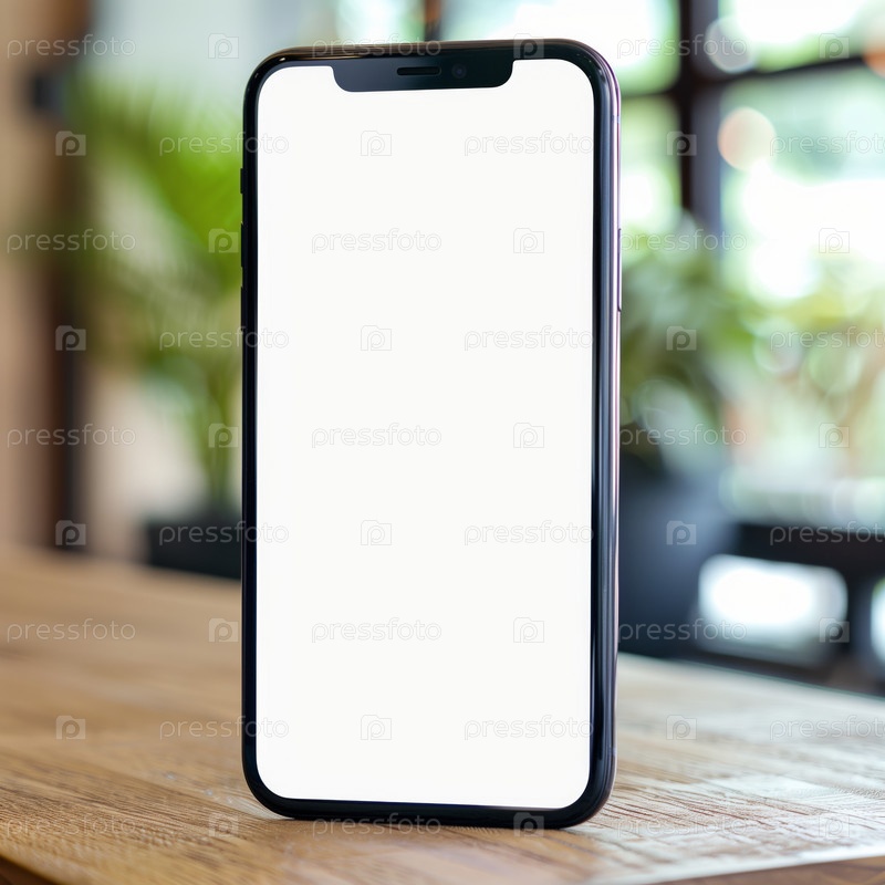 Смартфон с пустым экраном на размытом фоне