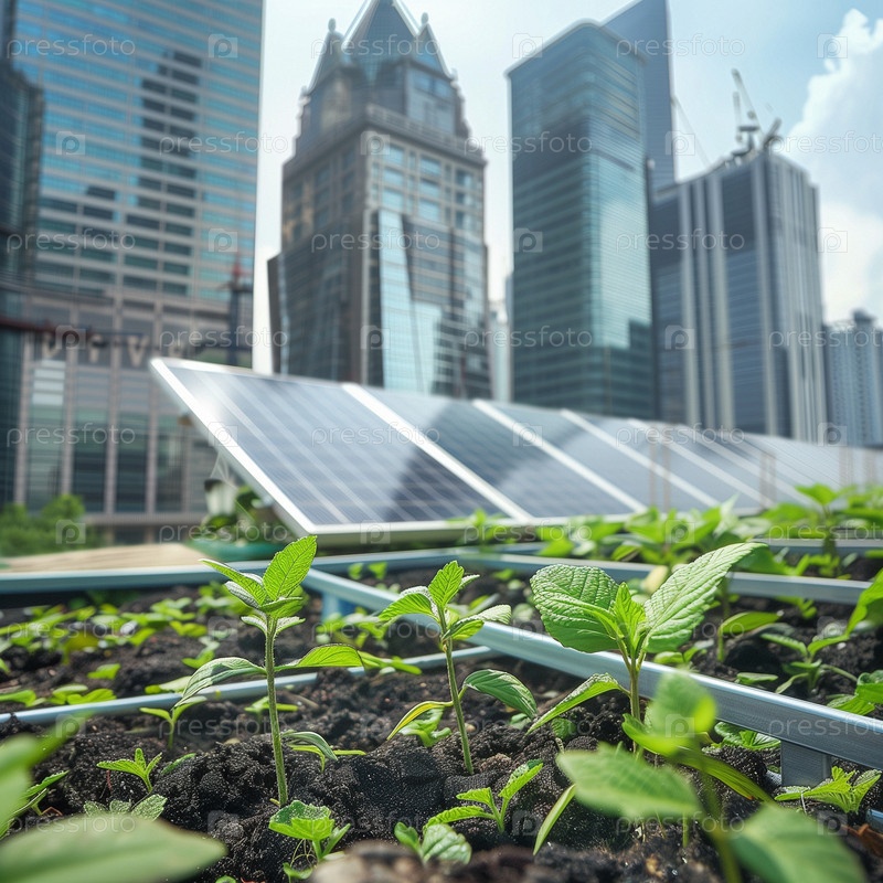Город с солнечной панелью и ветряными мельницами. Инвестиции в устойчивые проекты и экологически чистые технологии. Профессиональная подготовка