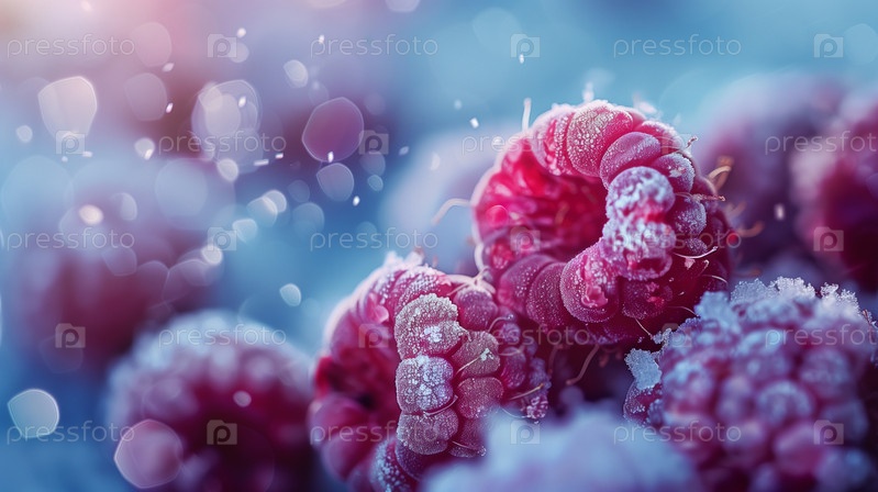 Покрытая инеем малина на ветке