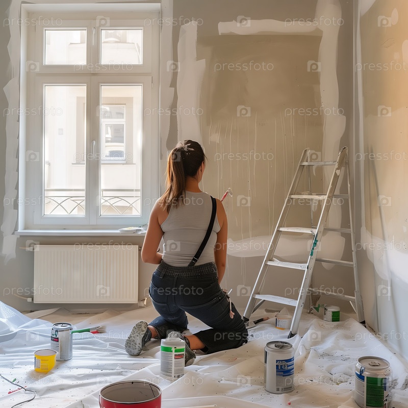 Женщина рисует интерьер комнаты