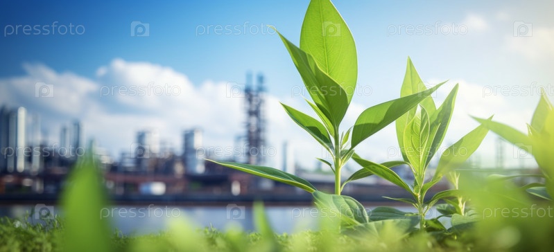 Зеленая промышленность Эко Энергетический завод Хорошая окружающая среда озоновый воздух низкий углеродный след широкий для баннера