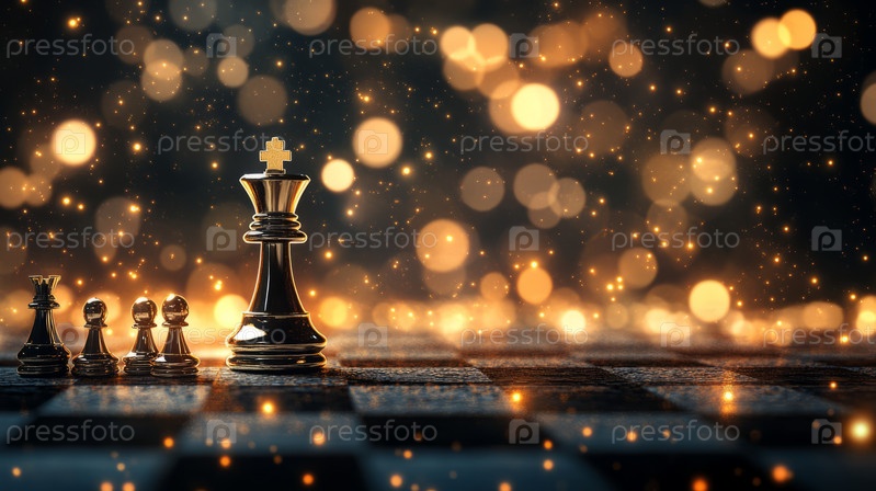 Шахматный король величественно возвышается среди тлеющих углей, символизируя стратегию и победу