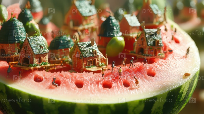 Миниатюрная деревня на арбузе