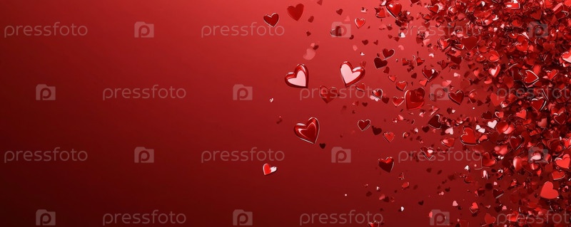 Воздушные шары в форме сердец парят среди яркого дождя из конфетти, создавая романтическую и веселую атмосферу праздника