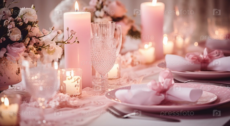 Романтическое торжество с красиво накрытым столом, бокалами для вина и подарочными украшениями