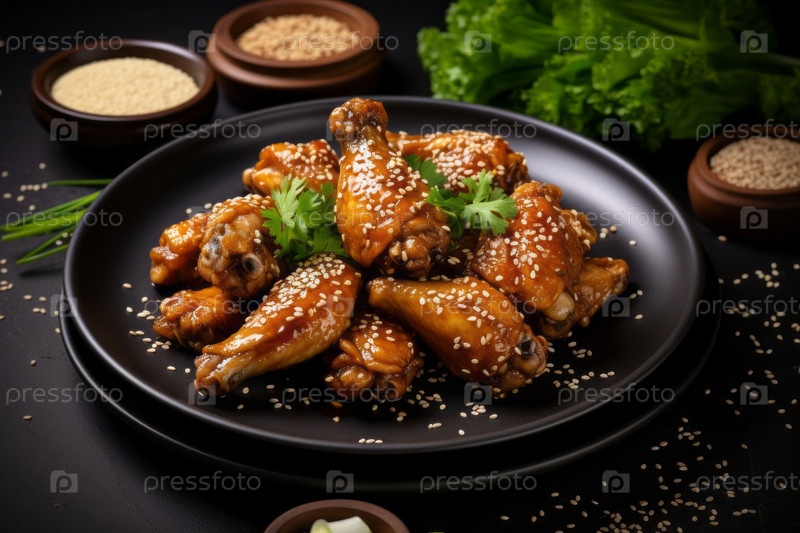 Эти куриные крылышки покрыты липким и ароматным соусом, что делает их идеальной закуской или основным блюдом для любого случая. Куриные крылышки идеально приготовлены