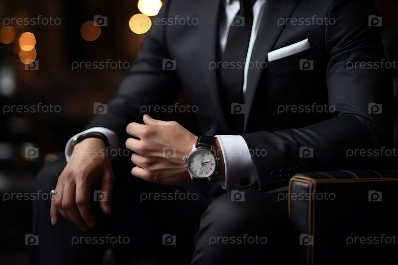 Крупный план мужской руки в костюме, поправляющей запонки руками, концепция одевания мужчин