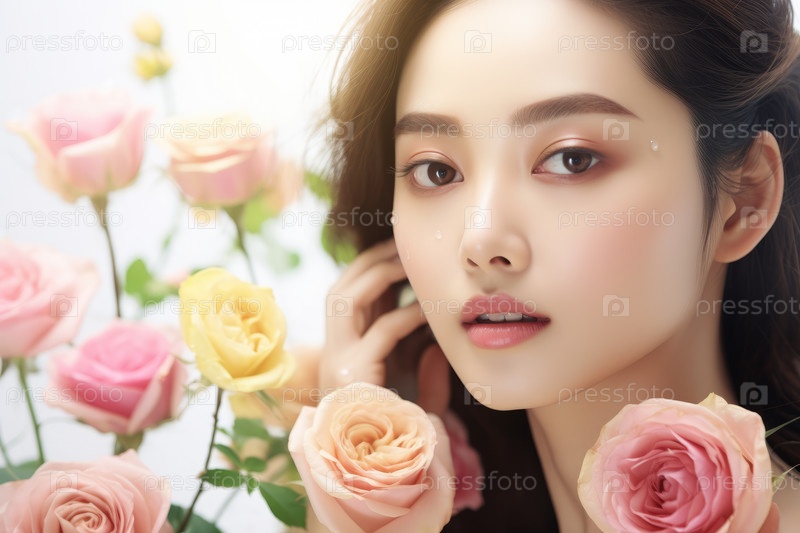 Крупным планом лицо молодой красивой женщины со здоровой чистой кожей