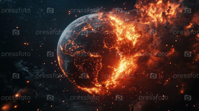 На этом захватывающем снимке запечатлен захватывающий момент падения астероида, в ярких деталях показаны драматическое столкновение и его огненный взрыв