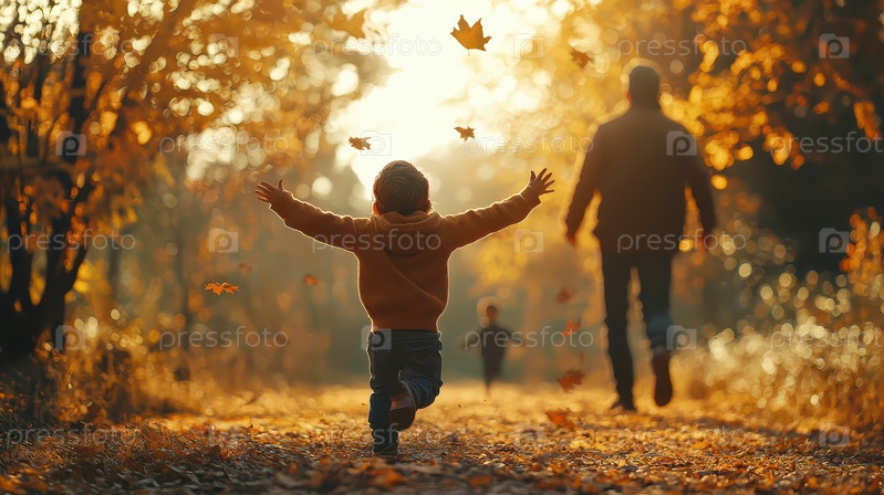 Дети играют в осеннем парке с падающими листьями