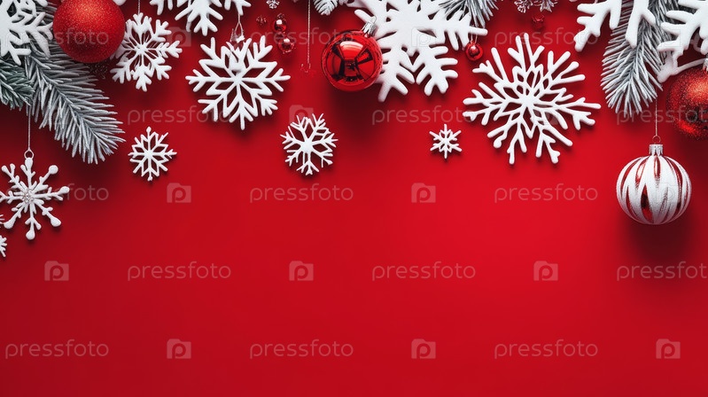 Праздничный узор снежинок на ярко-красном фоне