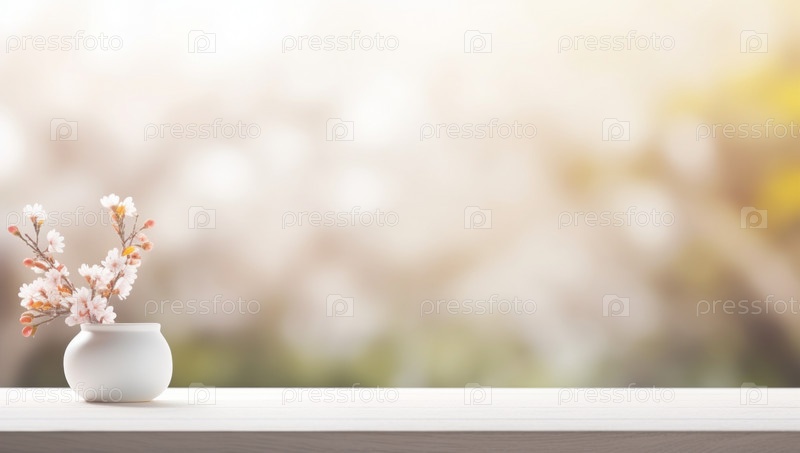 Пустой кухонный стол с размытым фоном современного интерьера весной