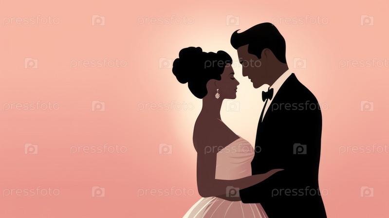 Невеста и жених танцуют нежный танец на романтическом градиентном фоне
