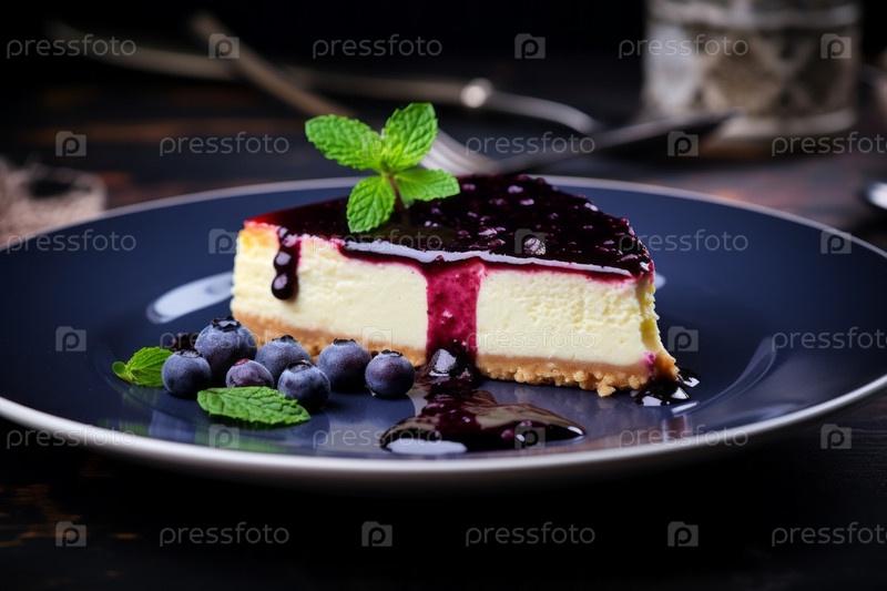 Чизкейк со свежими ягодами на деревянном фоне. Избирательный фокус